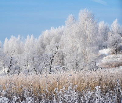 Деревья в инее, морозный день