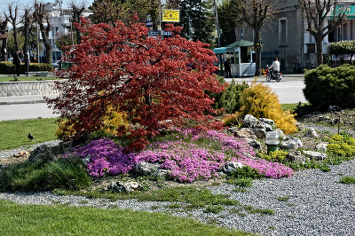 Эта клумба разделяет памятники Св. Клименту и Св. Кириллу и Мефодию и расположена напротив городского причала.