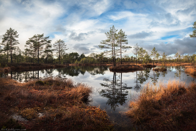 Контур берега и отражения сосен идеально дополняют друг друга. Любимая локация на любимом болоте в осеннем наряде