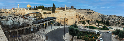 Иерусалим. Вид на Стену Плача и Храмовую гору Часто в поверхностных туристических публикациях огромный золотой Купол скалы (Куббат ас-Сахра), путают с более скромным куполом мечети Аль-Акса, называя упомянутый золотой купол куполом мечети Аль-Акса. Но именно Аль-Акса (тёмный купол) является третьей святыней ислама, а не Купол скалы, который тем не менее в архитектурном плане является центром комплекса. |