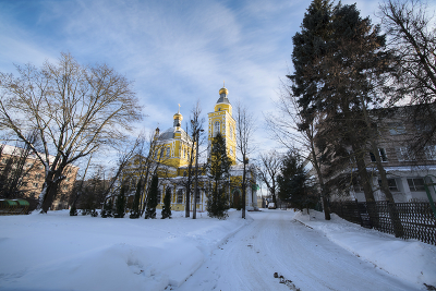 Собор в зимний морозный день