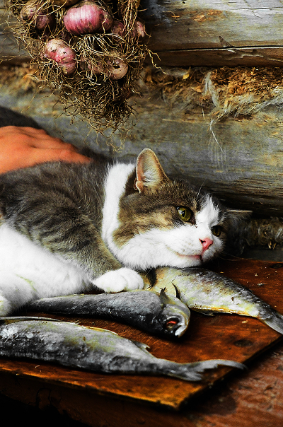 Вот интересно, почему кот не ест рыбу? Объелся уже? Это собаке можно сказать "Фу" и она не возьмет, а коту говори-не говори, он всё равно по своему поступит...