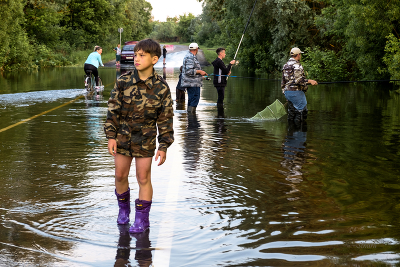После сильных дождей поднялась вода, и перелила дорогу между озёрами Исток и Сосновое.