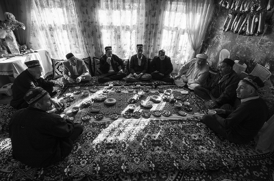 Вкусно, но сидеть страшно не удобно... Главный аксакал хочет прилечь...