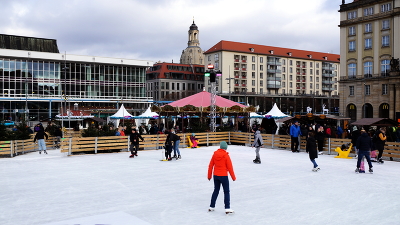 Каток на центральной площади Дрездена Альтмаркт. Конец января, на дворе +10.