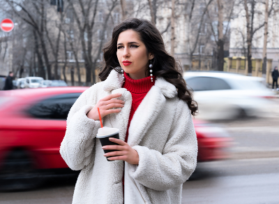 Viktoria Аnufrieva, вижу, что на короткой выдержке. Левая рука модели слегка смазана, видимо, не хватило терпения замереть. Красный с белым практически идеальное сочетание. Красный свитер - белая шуба. На смазе красная и белая машины. Вся картинка, в цветовом исполнении, идеально гармонична.