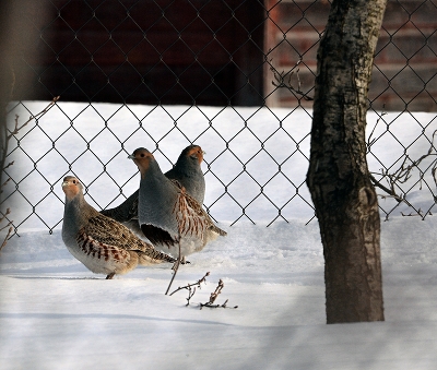 зима, куропатки