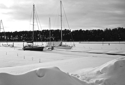 Интересно, что из года в год эти яхты оставляют зимовать на воде, во льдах.