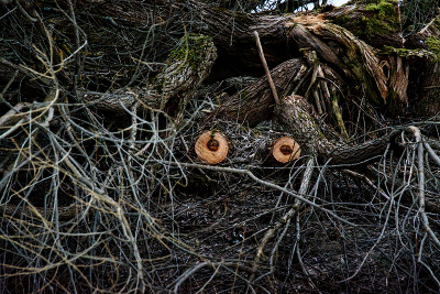 Проснувшийся леший выползает из логова.