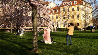 Фотосессия среди цветущих в середине марта сакур.