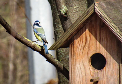 Пара лазоревок, по всей видимости, заселила скворечник.