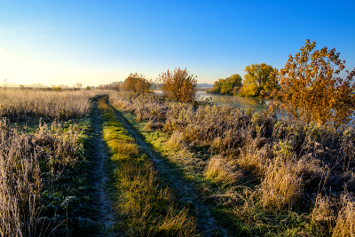 По дороге вдоль озера.