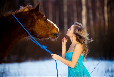 шнур - красная нить снимка! )) тока надо было платье такого же оттенка. а как зачотно усы и волосы лошади повторяют волосы девушки. да нормально так.