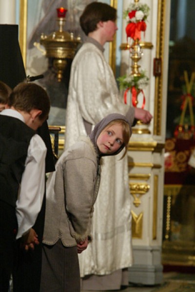 Что отличает эту карточку от обычной бытовой съемки? Возможно, качество. Но его в таком крошечном размере рассмотреть невозможно. Зато что видно отлично - завал фотографии вправо, линия колонны как специально здесь поставлена, чтобы подчеркнуть завал. Компоновать кадр автор даже не пытался, как получилось так и ладно. В результате голова девочки, на которую должно быть направлено все внимание , оказалась точно по центру снимка - самое неудачное положение, которое можно было придумать. Плюс к этому линия колонны, пересекая весь снимок сверху донизу, отделяет полоску справа, которая существует на снимке совершенно самостоятельно, внося дополнительный сумбур в снимок. Хотя исправить часть недочетов не так уж трудно, почему автор поленился это сделать - не знаю. Выровнять снимок и откадрировать примерно так
