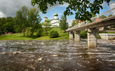 M Y X O M O P, Сама не ожидала, ведь половодье уже прошло. Местные жители сказали, что в верховьях прошли ливневые дожди, вот Пскова и взбунтовалась, по ней даже брёвна несло!