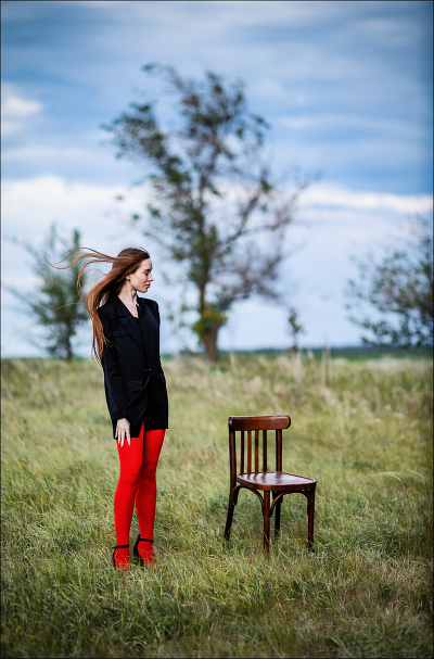 А ведь этот стул надо еще как то в поле вывести с моделькой , у меня вот нет своего автомобиля , такие постановки для меня сложны , я вот уж целый год не могу снять " падшего Икара " крылья в багажник не помещаются , а хотелось бы еще локацию интересную , хотя бы сокский карьер или песчаную дюну у моста ,а щас туда за забор так просто не попадешь .