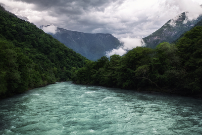 Река Бзыб или Бзыбь, кто как пишет и называет, признана самой протяженной рекой Абхазии. Смотря на течение горной реки, забываешь о суете..