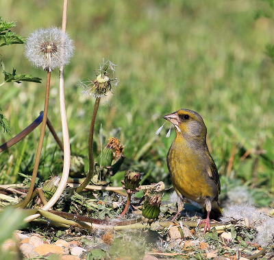 Семена-одуванчика-являются-летом-излюбленным-кормом-зеленушек,-коноплянок,-щеглов-и-воробьев.