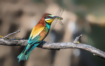 Правильное утро начинается с зарядки и завтрака. Золотистая щурка с утра пораньше уже успела и полетать, и обеспечить себя сытной добычей.