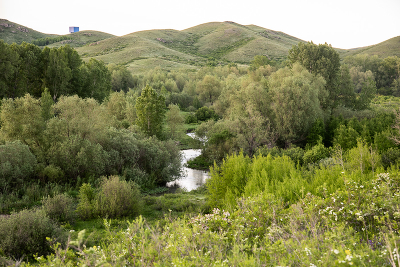Речка змейкой серебристой...