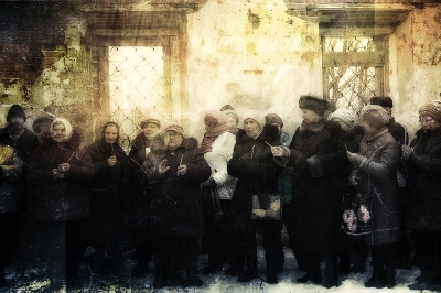 , Люди из СССР, а тут храм... событие не из рядовых. Если учесть. что этот храм посреди деревни почти 60 лет полуразрушенный. Думаю ретро здесь уместно.