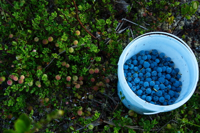 Черника с голубикой поспели, а клюкве до зрелости ещё далековато.