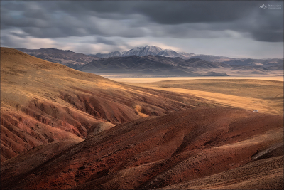 Вид на хребет Чихачева и долину реки Кызылшин.
