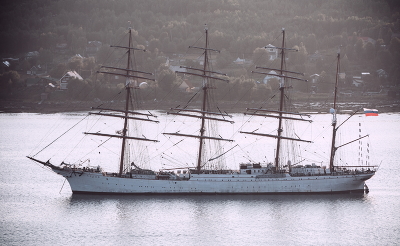 Заслуженный ветеран, бороздящий мировой океан с 1921 года, на рейде в Кольском заливе. Мурманск.