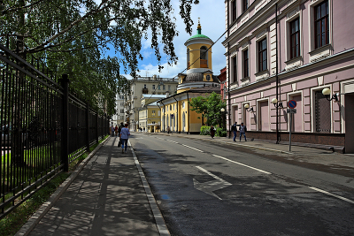 Архангельский переулок в Москве. Церковь Феодора стратилата на Антиохийском подворье. Июнь 2022.
