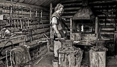 Кузнец. Кузнечное дело – одно из самых древних ремёсел Руси, и одно из самых уважаемых. Древнерусский люд нередко наделял кузнеца или «коваля», или «кръча» мистическими чертами, как мастера, обладающего загадочным умением превращать кусок бурого камня в металлический предмет. |