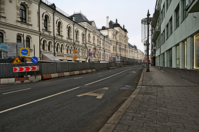 Лубянский проезд в Москве. Бесконечная реставрация Политехнического музея. Февраль 2023.