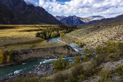 Чуя перед слиянием с Катунью. Осень, Чуя просветлела, мутные летние воды ушли, теперь она бирюзовая сродни Катуни. До слияния совсем короткое расстояние, реки сольются и Катунь понесет свои воды в великую Обь. |