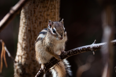 Бурундук Сеня отдыхает на ветке.
