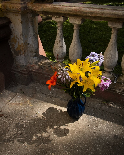 Самый пленэрный натюрморт Натюрморт поставлен мной во время пленэра в усадьбе с участием фотографов, летом 2023 г. Использовала локацию на балконе дома постройки конца XIX в., который готовят к реставрации. Во время пленэра художники ставили натюрморты (другие), проводили мастер классы - было интересно. PleinAir at an old museum house of XIX c. awaiting conservation works |
