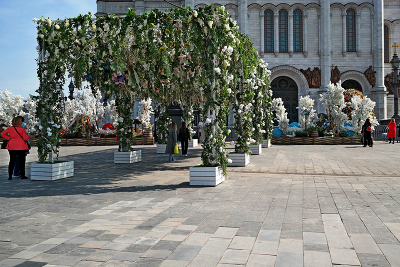 У храма Христа Спасителя в Москве. Апрель 2023.