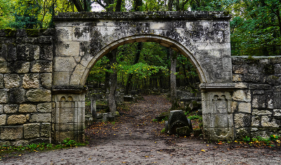 Крым. Бахчисарай, Иософатова долина. Вход в родовое караимское кладбище Балта Тиймез (Топор не тронет)