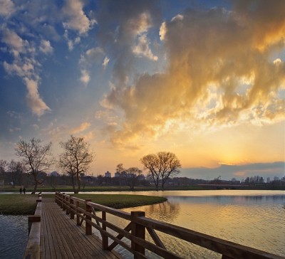 А человечка одного (второго затираем) в центр на фон светлой воды в контраст... Вечерок.