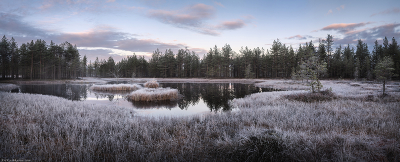 Травы, кустарники и деревья – всё покрылось слоем белой изморози. Топи и болотные озерки только-только начинают затягиваться свежим ледком.