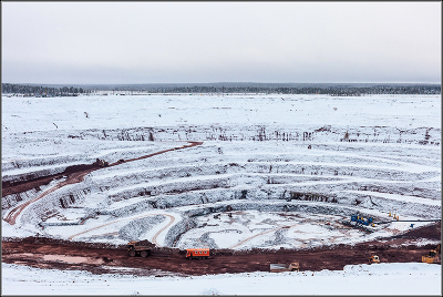 Здесь добывают алмазы. Алмазное месторождение имени М.В. Ломоносова В 100 километрах от Архангельска. Крупнейшее в Европе. Диаметр трубки более километра, глубина - более 130 метров. Ноябрь. |