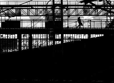 Edu, Да уж. Штамп на штампе и штампом погоняет. Даже с вами соглашусь, что штамп. Особенно человек идущий по мосту. В профиль. Но здесь именно композиция из пересечений металлоконструкций, заполненная разными сетками - клетками показалось интересной. И, согласитесь, без фигуры эта композиция скучна. При существующем количестве фотографий на квадратный метр - что будет не штамп? Кстати, на человека, идущего по улице, вообще штамп некуда ставить.