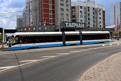 Шел трамвай какой-то номер по Большой Андроньевской улице в Москве. Июнь 2023.
