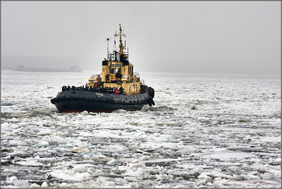 На Кегостров. В межсезонье, когда по Северной Двине прекращают ходить теплоходы, а ледовые переправы ещё не организованы, жители островных территорий добираются до Архангельска и обратно на палубе буксира ледокольного типа. Многие работают в городе и приходится совершать такие поездки ежедневно. Сегодня в Архангельске с утра температура плюс 2, до сих пор ледовые переправы не сделаны, хотя в прошлые годы их сооружали уже к середине декабря. |