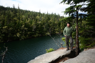 Ну а пийзаж , смотрите как елка проросла меж скал , изумрудная зелень реки чудесно гармонирует с цветом одежи , а..?