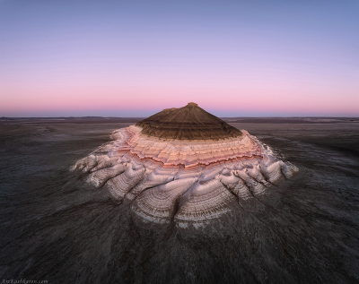 "Бокты, Казахстан" Бокты – одинокая гора на просторах Западного Казахстана, состоящая из разноцветных осадочных пород. Известняк, мел и глины чередуются между собой создавая контрасты по яркости и цвету |