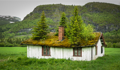 Норвежские зеленые крыши –дело известное, но чтобы такие мощные елки выросли – это что-то… Крыша аж прогнулась