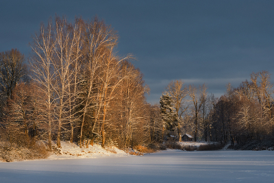 Февраль. Пивоварово- озеро и деревня вокруг него.