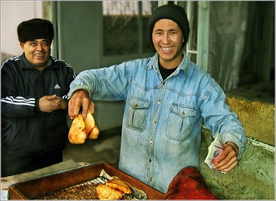Леонид Левонович, спасибо.. это - самса, такие пирожки узбекские, типа чебуреков, что-ли...внутри мясо, баранина. Выпекают в тандыре, это такая печка вроде большого горшка, внутри на стенки ляпают заготовки, они выпекаются - и...вкусно.. Очень вкусно... Это Ташкент, настоящий узбек - такой же гурман, как и француз... Друзья возили по городу каждый день в разные места, там где готовят самые вкусные шашлыки, шурпу, плов.. И вот - самса, тоже одна из самых вкусных в городе...