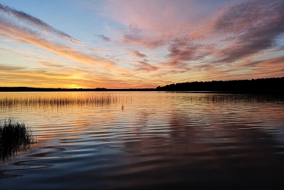 постепенно стемнев на оз.Мядель.