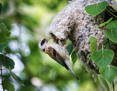 Ремез у гнезда с потомством. Видела трёх птенчиков в гнезде, а сколько было, не знаю. Очень сложные съёмки. Постоянный ветер был, сколько я не приезжала, такой сезон неудачный. Птичка мелкая и очень быстро летает, почти не задерживалась при влёте в окошко. )) Вообще ремезы милые и симпатичные, но, как и убедилась, в этот период вид у родителей совсем не лучший. Измученные, чумазые, смешные! Гнездо сооружает самец, а потом приглашает избранницу. Если ей нравится гнездо, то так и образуется семья. Гнездо очень красивое - белая маленькая пуховая варежка (без стянутого большого пальца)).. Дожди и ветра меняют вид. Потому, к следующему году гнездо почти непригодно. |