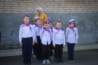 первый класс в первый раз участвуют в школьном смотре песни и строя